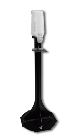 The freestanding sanitizer mount is highly mobile, easily assembled, and accommodates nearly any wall-mounted sanitizer dispenser.